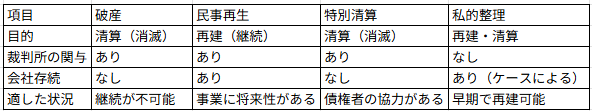 倒産・再生に向けた4つの法的選択肢